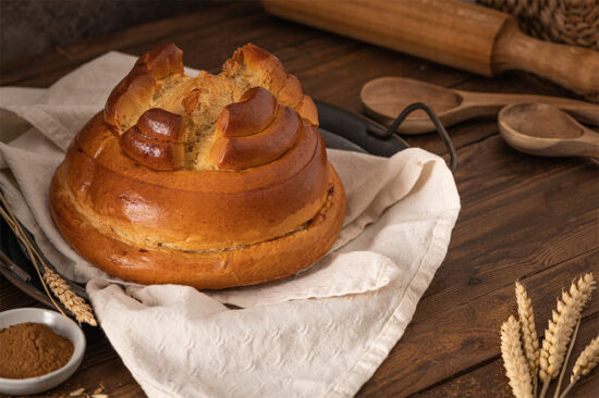 A fogaça é um pão doce tradicional de Santa Maria da Feira, cujo formato estiliza a torre de menagem do castelo com as suas quatro torres.