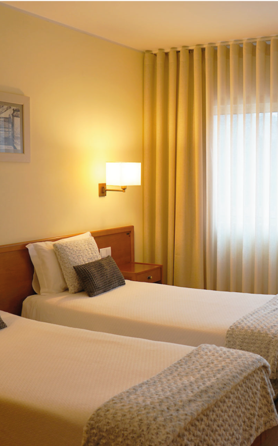Quartos individuais, duplos, triplos e suites (com ocupação até 4 hóspedes)